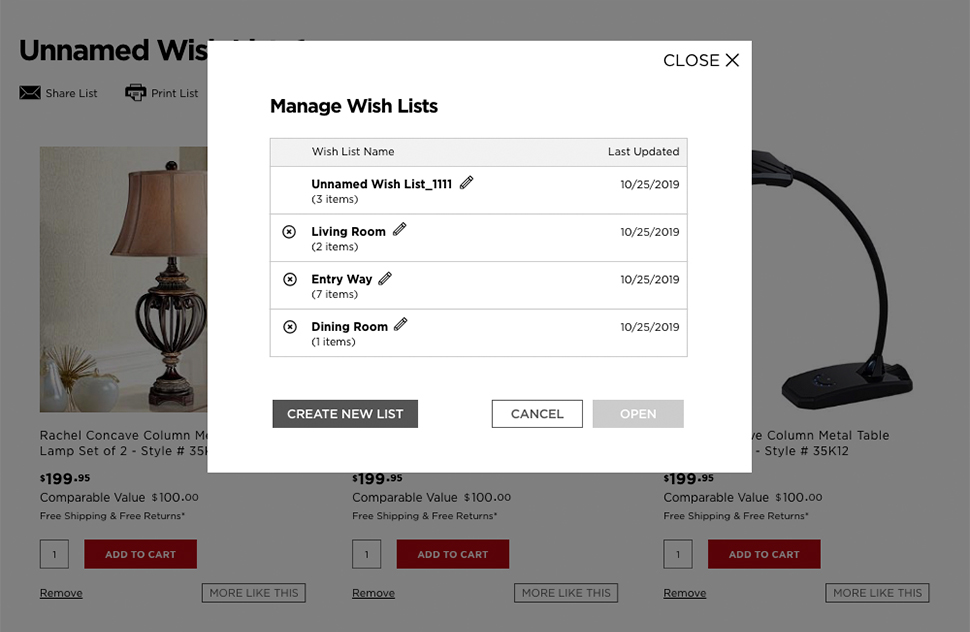 Improved the Wishlist page experience by eliminating unnecessary elements and implementing a modal interface, making it simpler for users to view and manage their saved items.